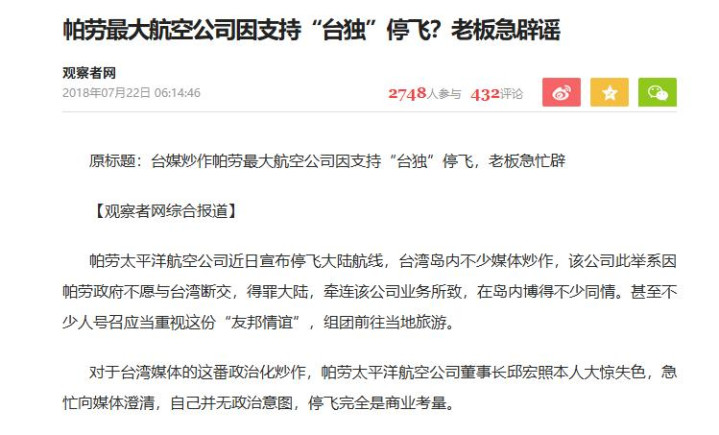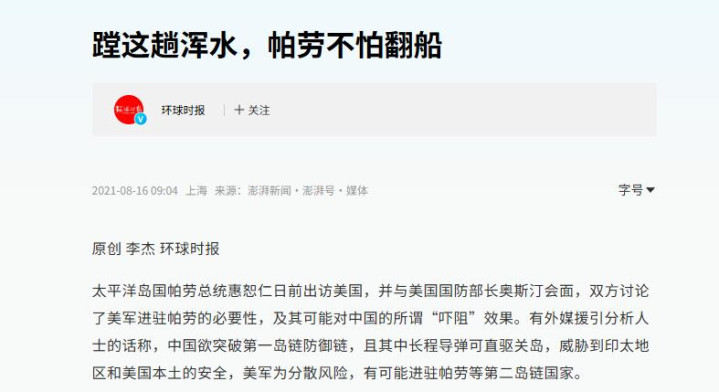 与此同时,台媒也在疯狂炒作帕劳之所以停飞中国航班,完全是为了台湾。